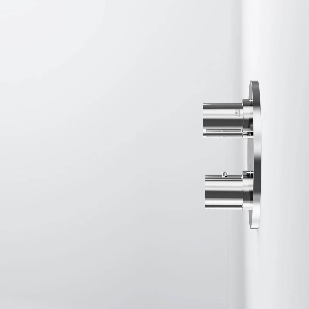 Stiilse kasutusmugavusega, 2 väljundiga, varustatud integreeritud tasapinnaga, termostaat veetemperatuuri seadmiseks, keraamilised tihendid. Diverter koos veevooluhulga reguleerimisega. Segisti teeb turvaliseks ohutusnupp, mis takistab näiteks lastel kogemata vee temperatuuri seadistamise üle 38° C.