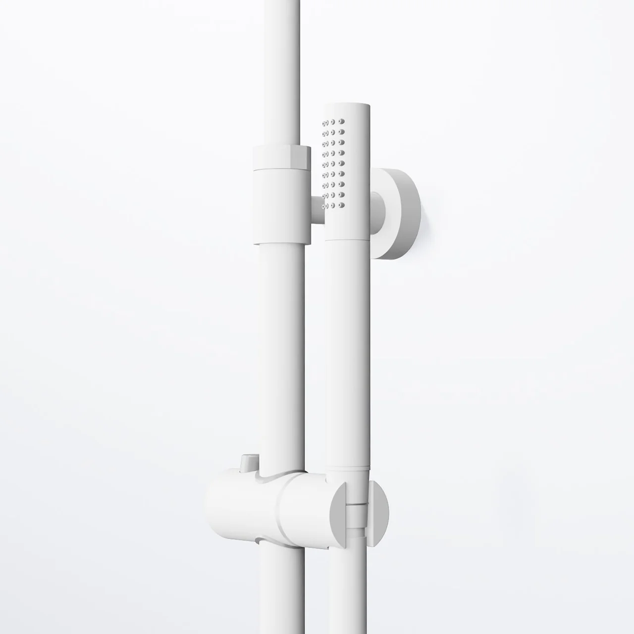 Koos termostaat dušisegisti, vihmadušši ja käsiduššiga, “easy clean”, keraamilised tihendid. Segisti teeb turvaliseks ohutusnupp, mis takistab näiteks lastel kogemata vee temperatuuri seadistamise üle 38° C.
