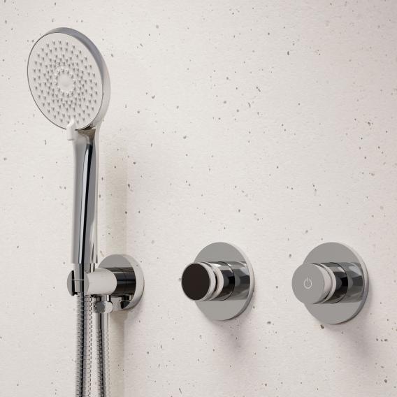 Digitaalne Iconic-seeria dušisegisti ühendab nutika uuendusliku tehnoloogia ja minimalistliku matt musta disaini: veetemperatuuri saab täpselt seadistada ja juhtida intuitiivse elektroonilise pöördnupu abil. Rõngakujuline LED-temperatuuri näidik muutub sinisest/külmast roosaks/kuumaks esteetiliselt põnevas värvimängus. Lisaks saab vastava diverter-juhtseadme kaudu juhtida kahte erinevat dušitüüpi. Ekraan ei näita mitte ainult valitud dušitüüpi, vaid ka temperatuuri.