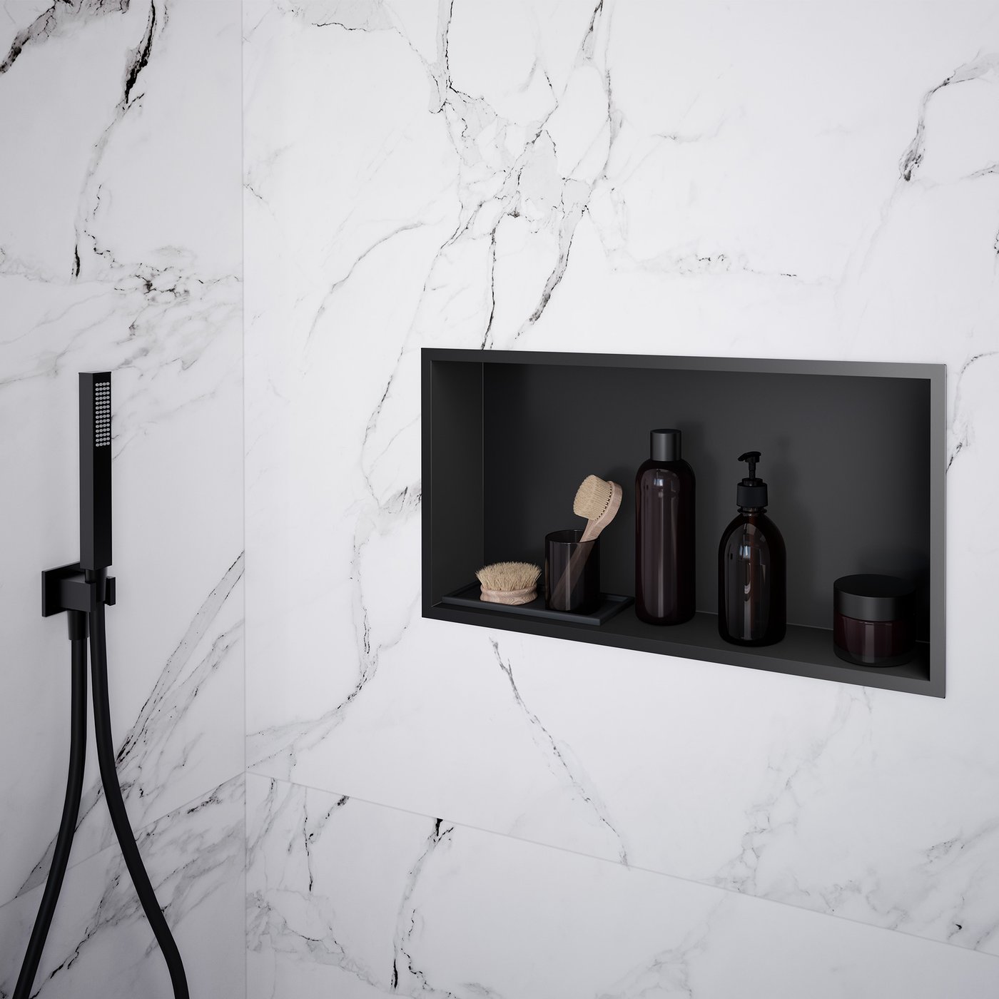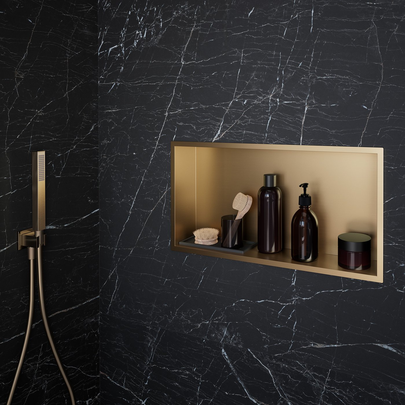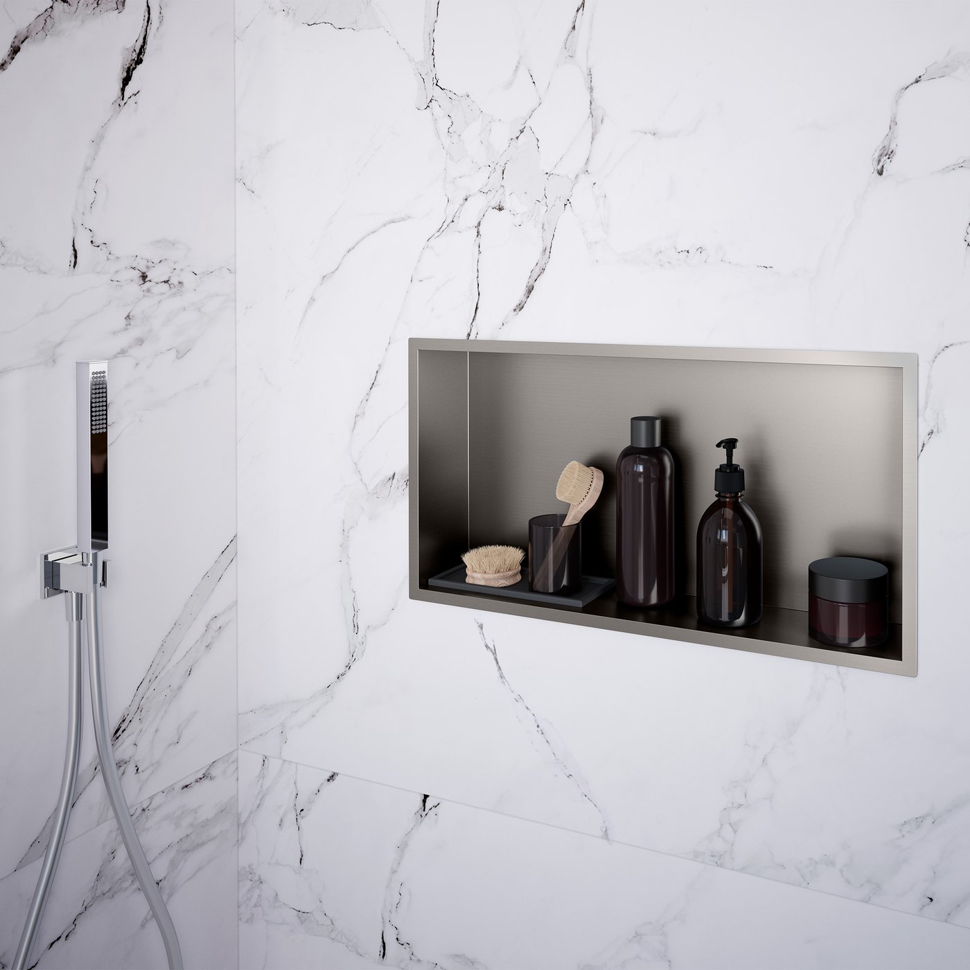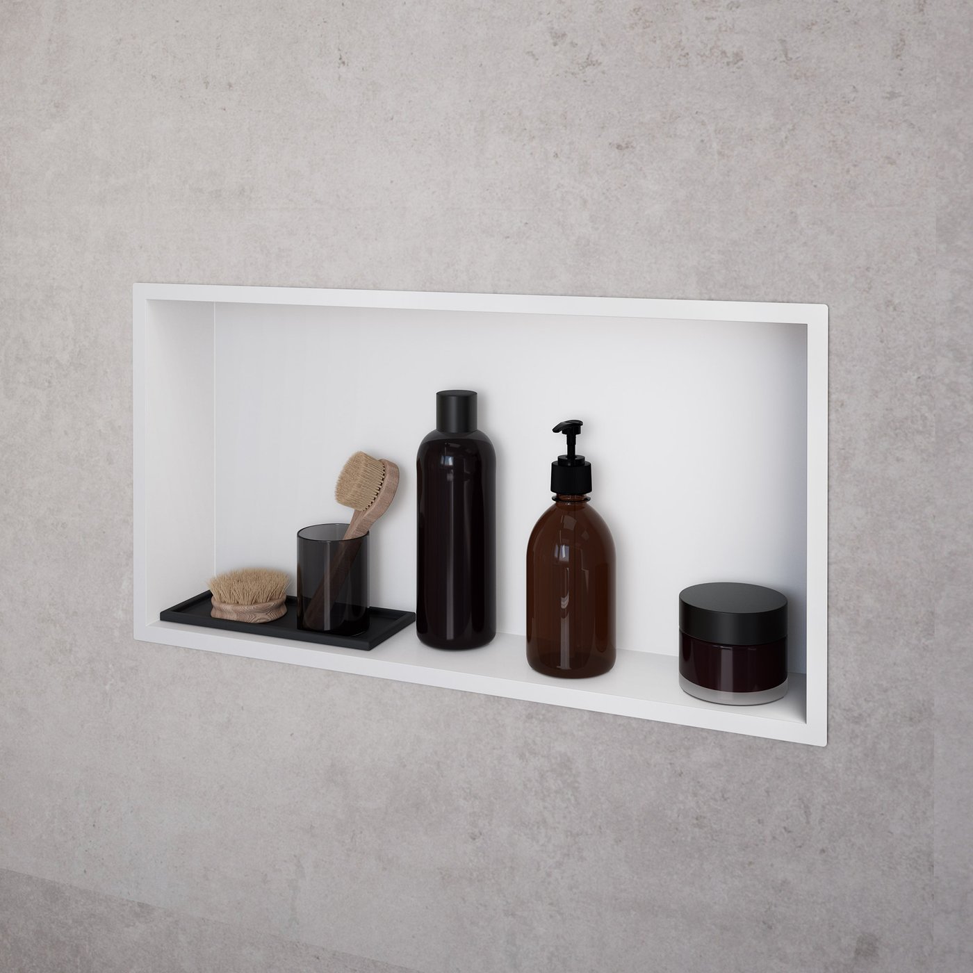 Stiilne ja kiiresti integreeritav süvistatav riiul vannituppa