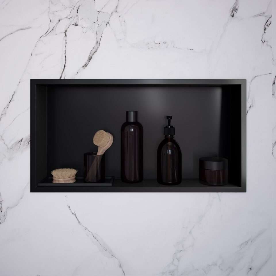 Stiilne ja kiiresti integreeritav süvistatav riiul vannituppa