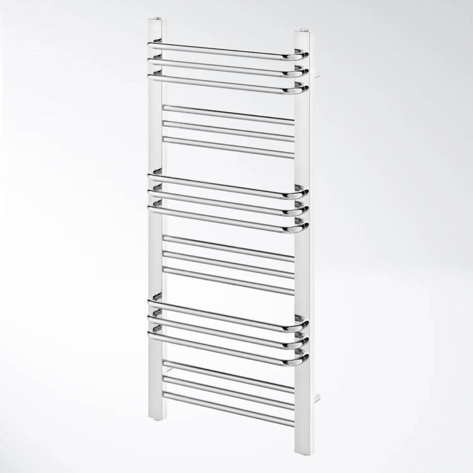 Tõhus ja praktiline vannitoa radiaator. Erinevate profiilide paigutus võimaldab lihtsalt rätikuid kuivatada. Sisseehitatud ONE elektrikütte elemendiga.