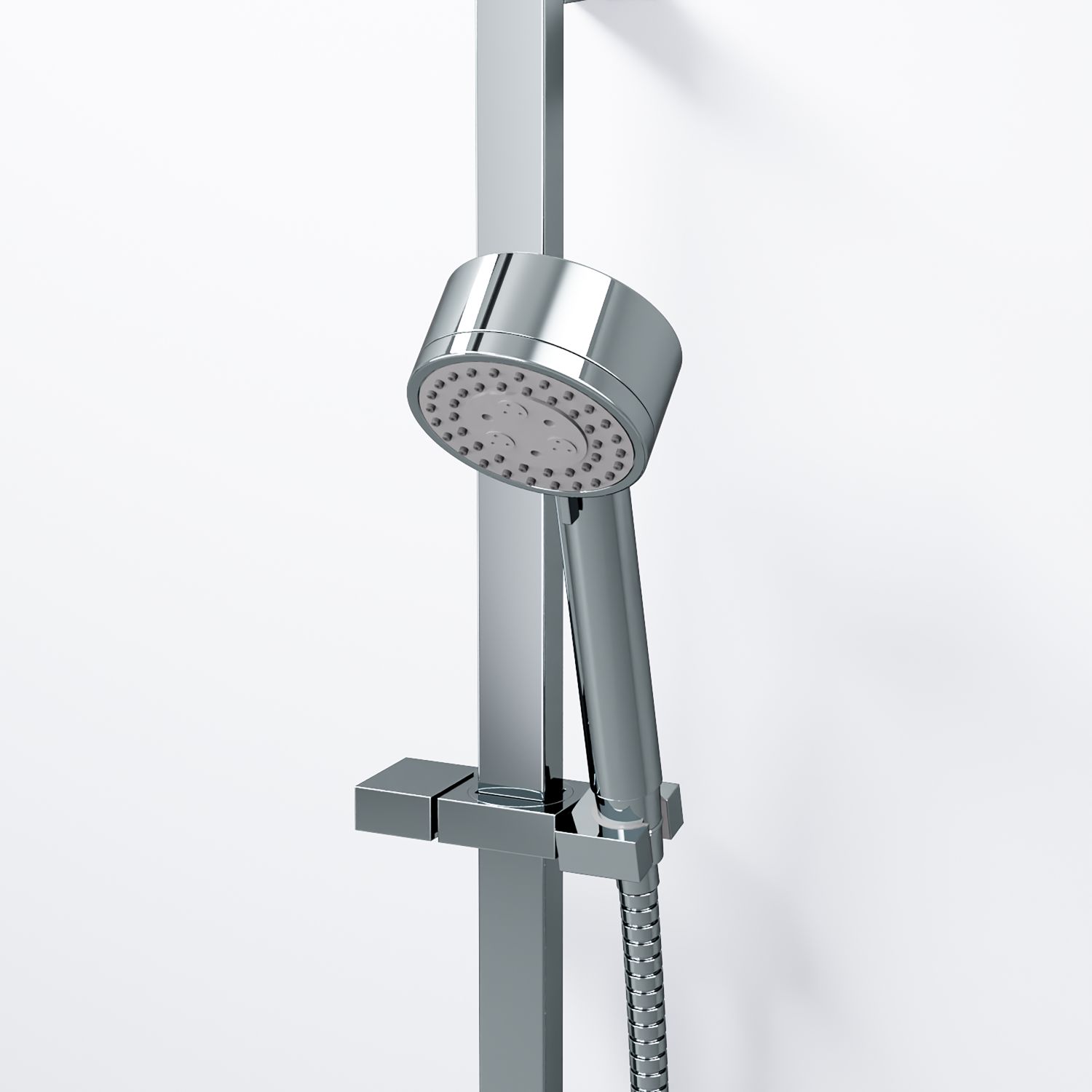 Dušikomplekt Pihustusrežiim: 3 funktsiooni. Käsidušš: Ø 80mm, duššivoolik: 1800 mm. Duššilifti kõrgus 900 mm. Materjal messing, viimistlus kroom.