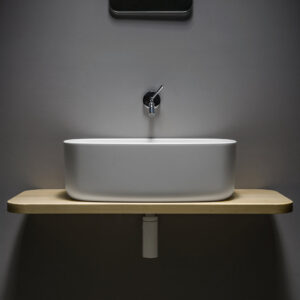 Komplektis äravoolu 1/4 G kroomitud põhjkalapp – valge Corian pealispind.