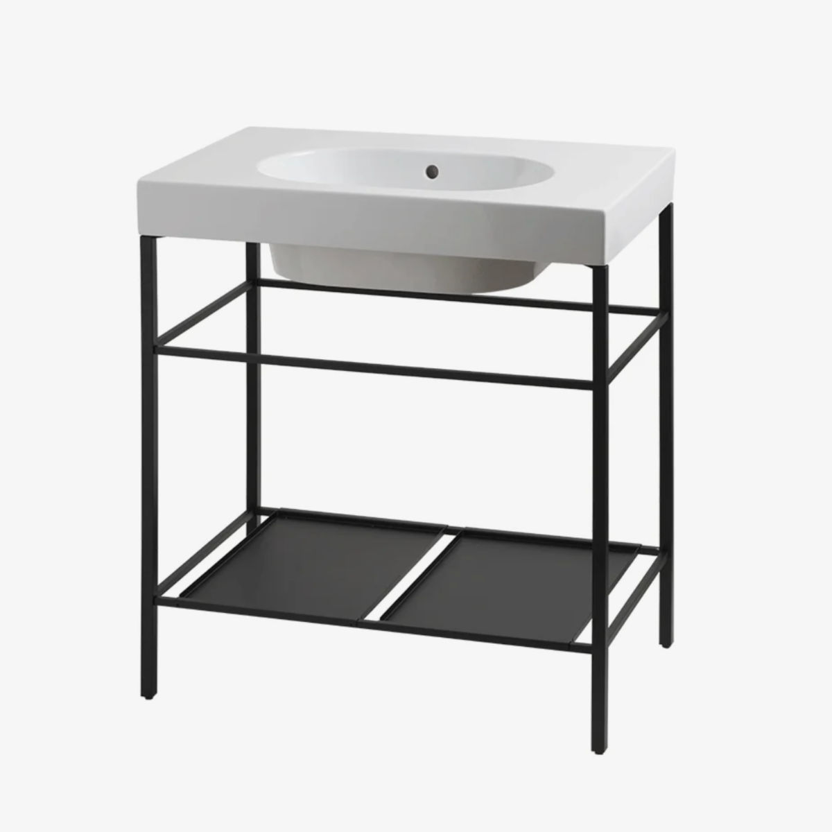 Integreeritud jalgadel valamu väikeste vannitubade jaoks. Eileen on äärmiselt praktiline tänu oma raamile, mis on ka hea rätikute hoidmiseks.