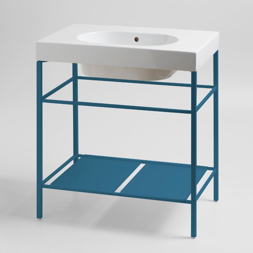 Keraamiline valamu ja mustaks, valgeks, siniseks või punakas beežiks värvitud metalljalad.