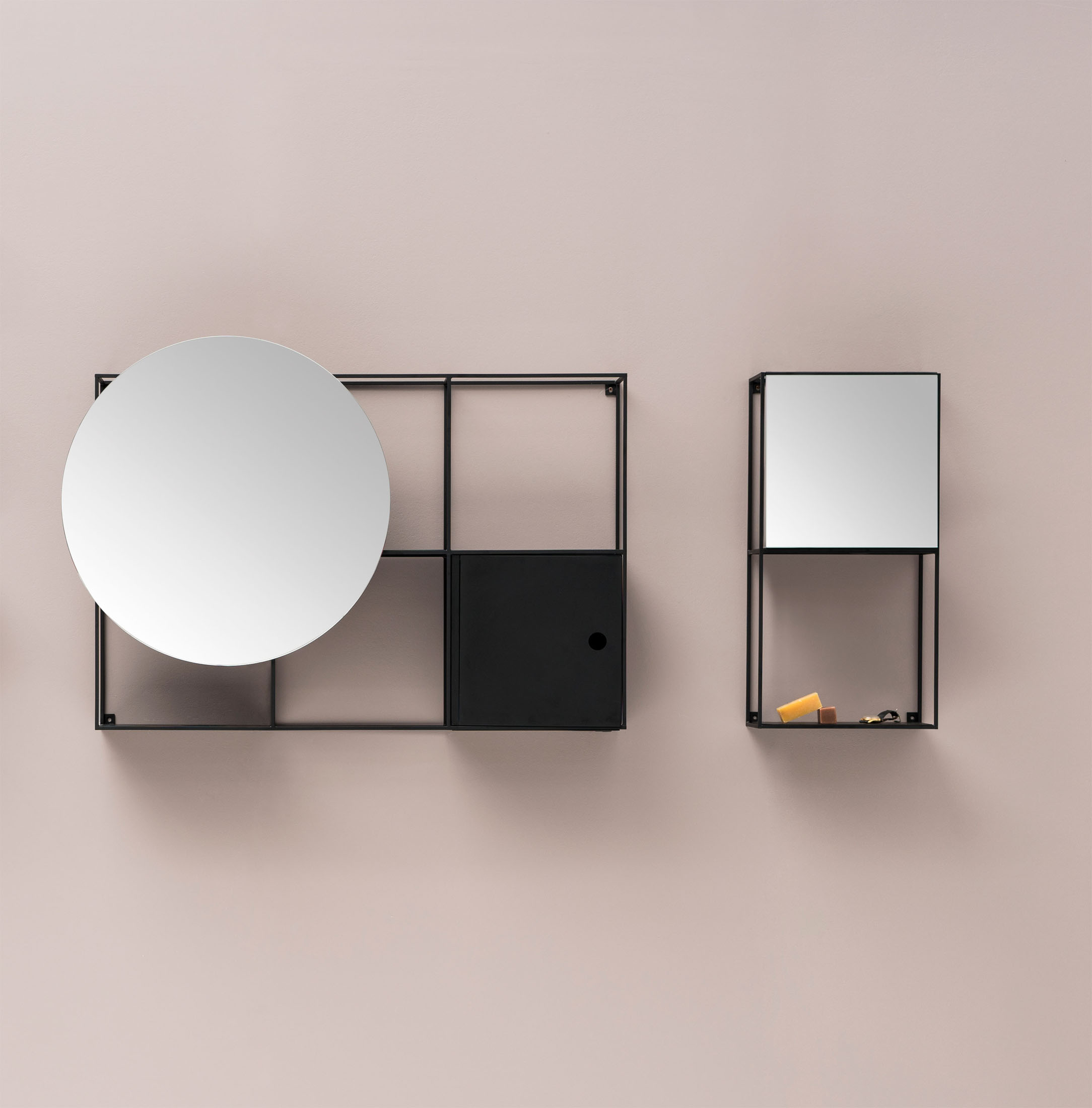Koosneb: must metallraam 2×1, kandilne peegel, 1t tavariiul ja 1tk süvendiga riiul.