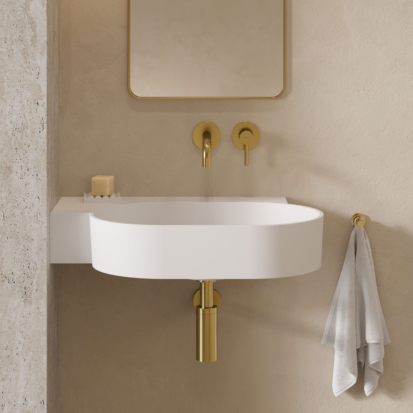 Seinale kinnitatav valamu on valmistatud Solid Surface materjalist ning sellel on kergesti hooldatav pind. Valamule on võimalik paigalduse käigus tekitada ka segistiava, segisti saab paigutada täpselt sinna, kuhu soovid.
