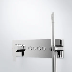 Stiilse kasutusmugavusega, 4 väljundiga, varustatud integreeritud tasapinnaga, veetemperatuuri ja vooluhulga seadmine, käsidušš koos dušivoolikuga, 4 nuppu pakendis (erinevate väljundite jaoks), keraamilised tihendid.