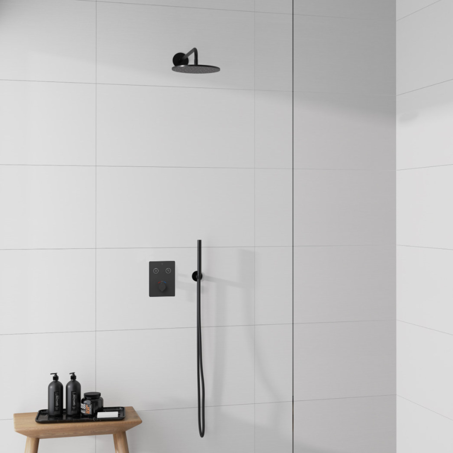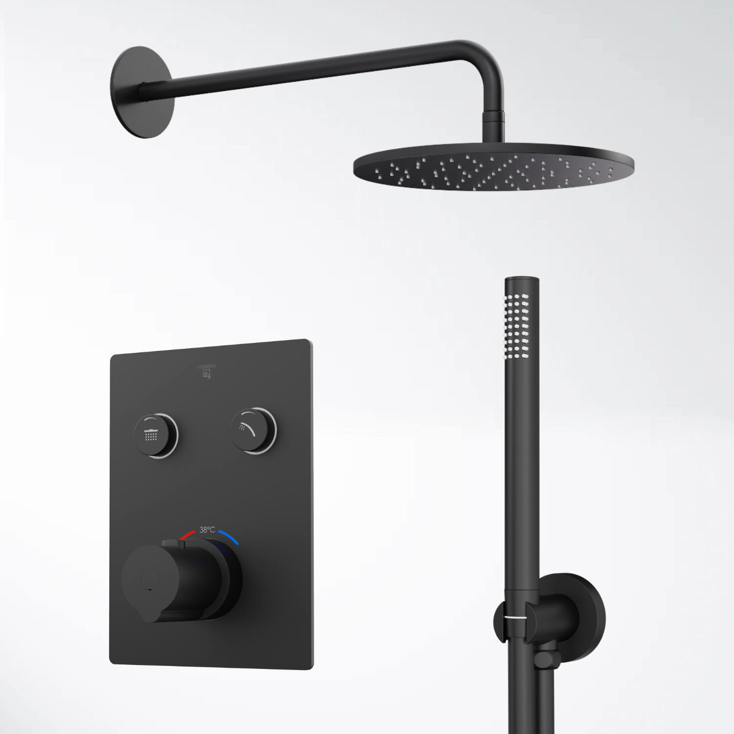 KÄSIDUŠŠ KOOS DUŠIVOOLIKUGA JA 1/2 INTEGREERITUD VEESISENDIGA SEINAKINNITUS, MATT MUST
