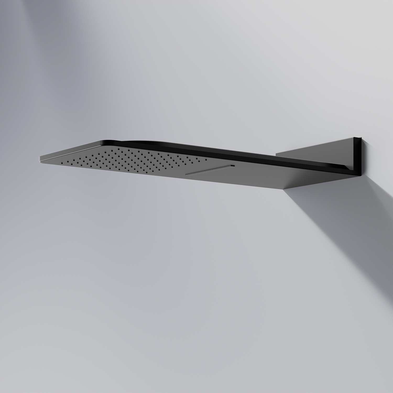 Vihmadušš, 600 mm x 250 mm, 2 funktsiooni, seinale paigaldus, roostevaba veevoolu hulk 18.5 / 17.5 l/min – 3bar, “Easy Clean System” 2 funktsiooni: klassikaline intensiivne vihm ja tugev kaskaad juga.